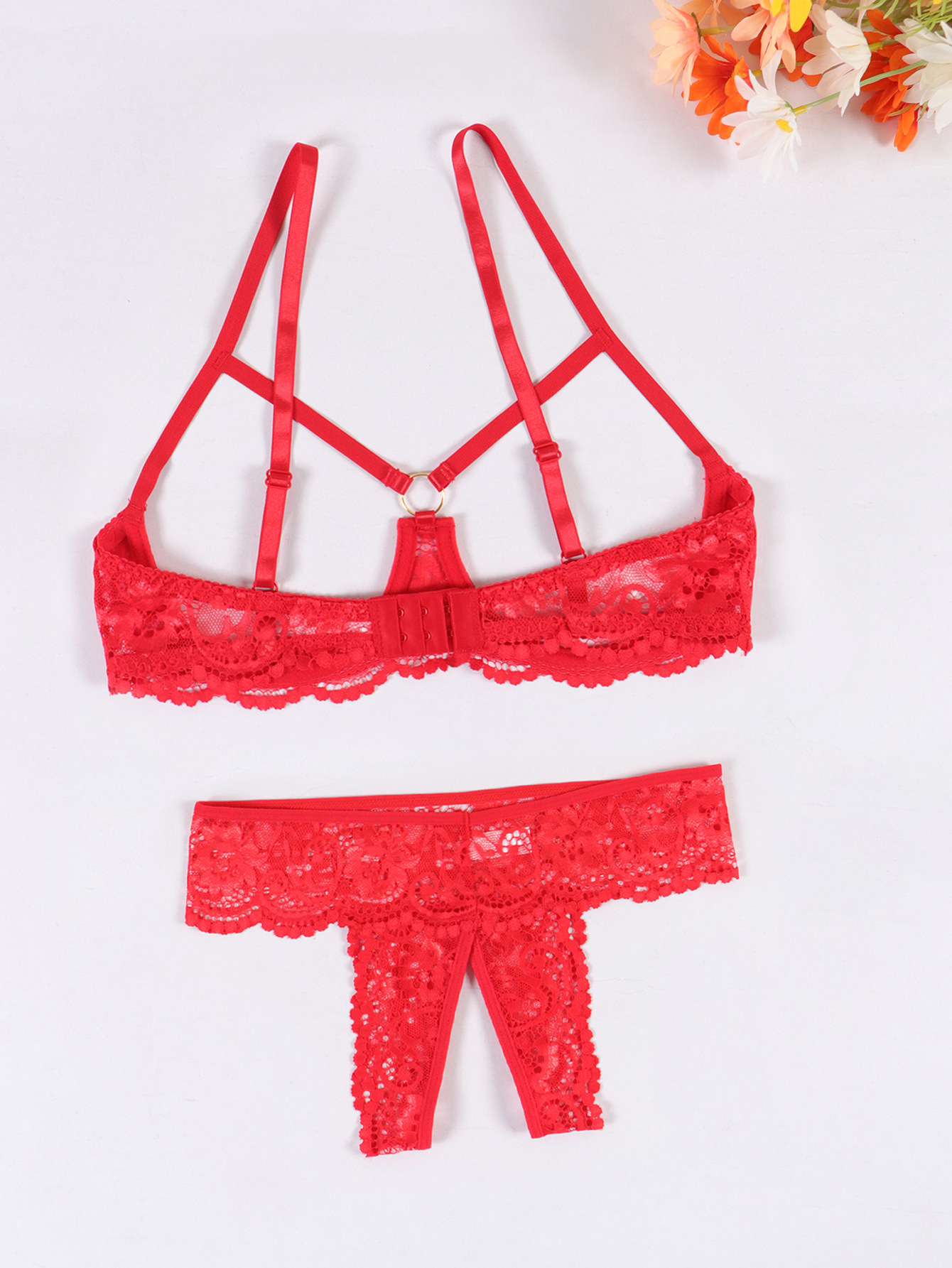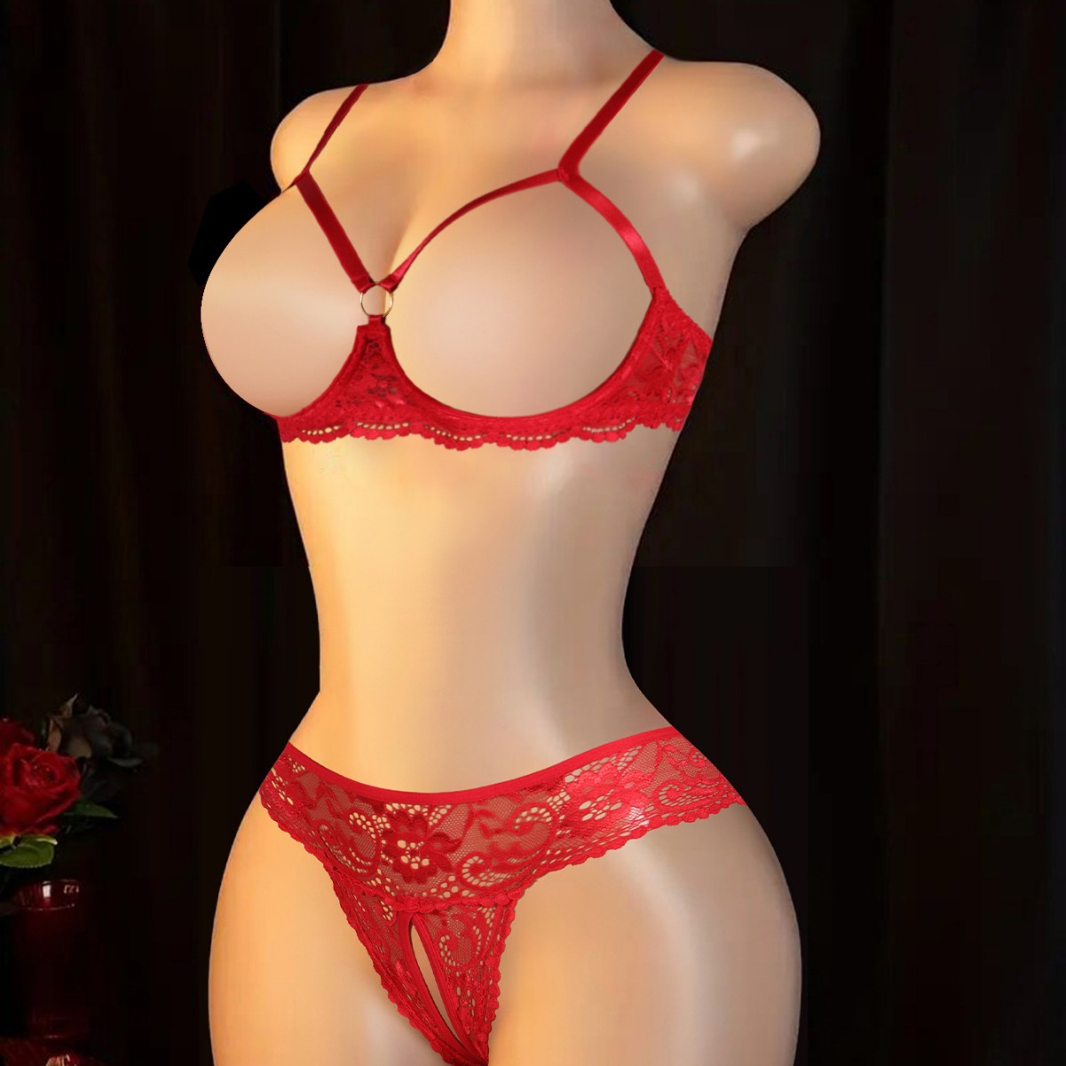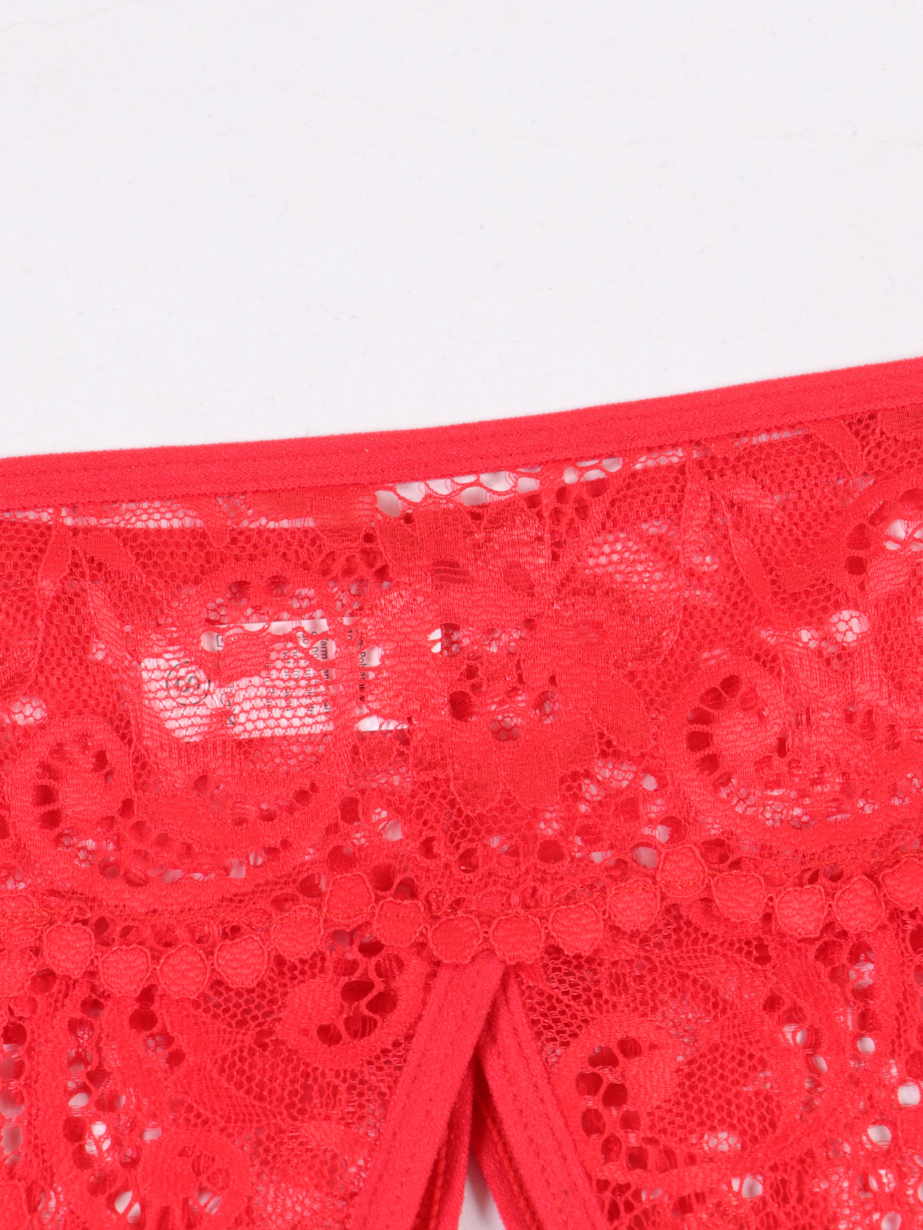 Product information: Gender: Female Fabric Name: Nylon Color: Black open-crotch set, bright red lace open-crotch set Main Fabric Composition: Nylon Style: Low-cut/Exposing top Sizes: S, M, L, XL