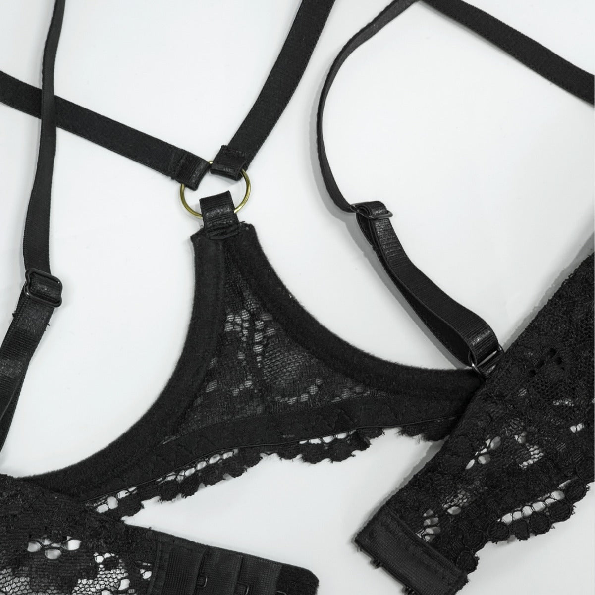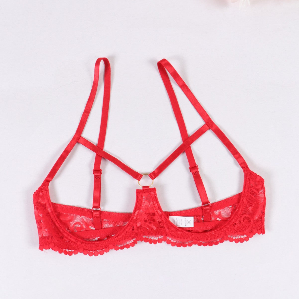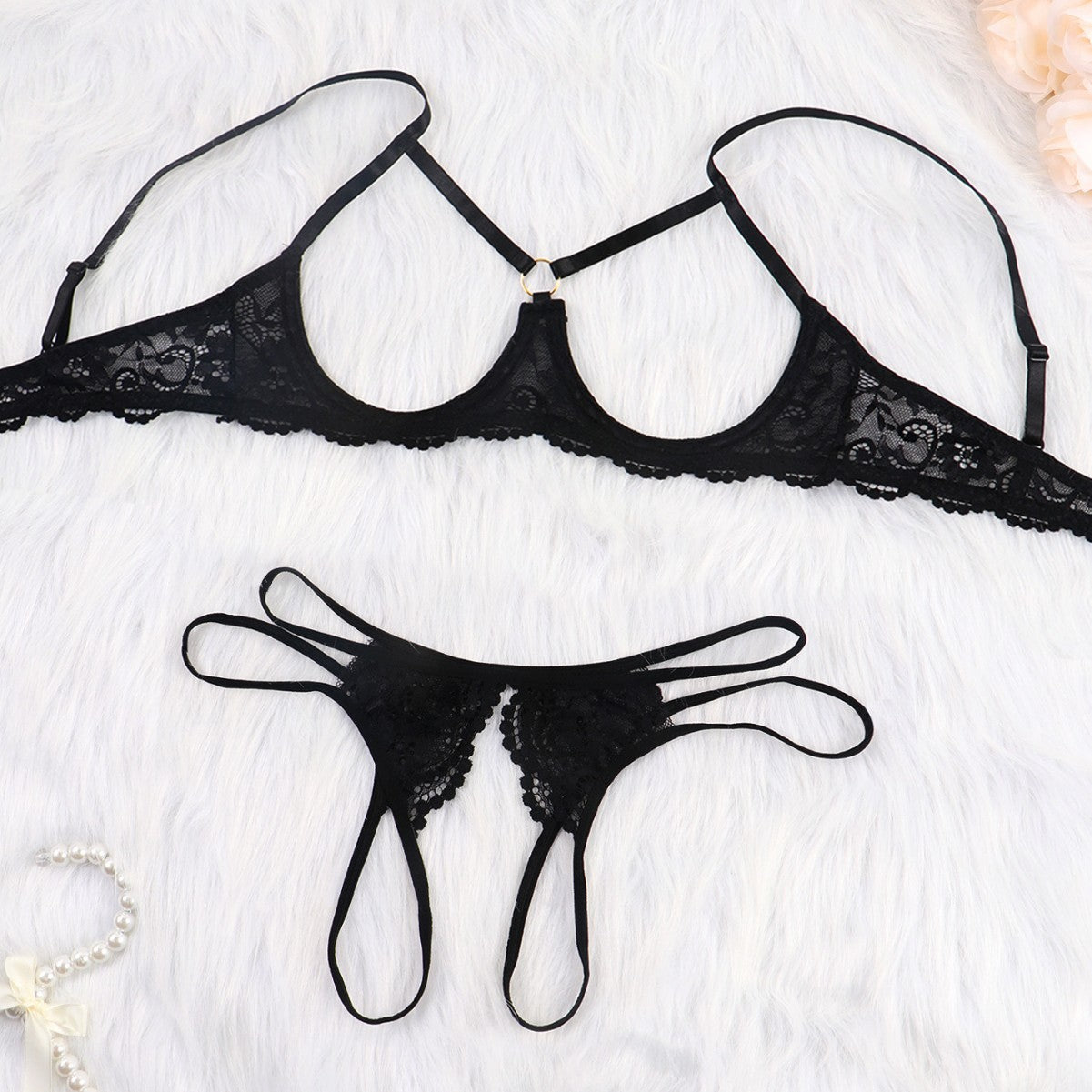 Product information: Gender: Female Fabric Name: Nylon Color: Black open-crotch set, bright red lace open-crotch set Main Fabric Composition: Nylon Style: Low-cut/Exposing top Sizes: S, M, L, XL